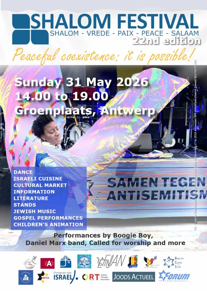 Dit kleurrijke en multiculturele evenement gaat jaarlijks door in Brussel en Antwerpen. Het is een samenwerking tussen de evangelische christenen en de Joodse gemeenschap van Antwerpen en Brussel. Elk met behoud van hun eigen identiteit, treden ze samen naar buiten met een boodschap van vrede naar het grote publiek, op straat en in de media.